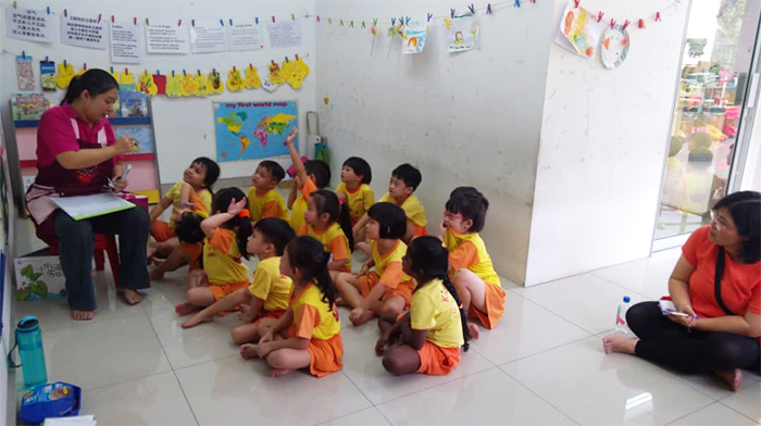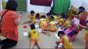 | 除了大团体常年及不定期进修,绿洲也安排海外大学幼教系教授对老师的教学进行个别班级视察,精进绿洲教学。 |